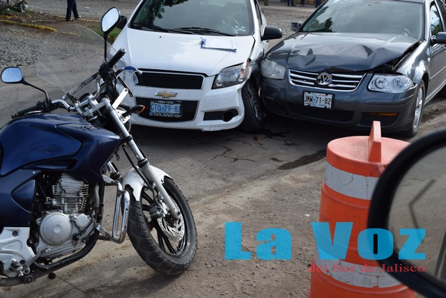 CIUDAD GUZMÁN, JAL., (ES).- Grandes pérdidas materiales dejó un choque en el cruce de las calles Nicolás Bravo y la avenida José Vasconcelos, entre un coche en color blanco de la marca Chevrolt, con placas de circulación GTU-29-87, y un automóvil Vokswagen en color gris oscuro, con placas JMW-71-822.