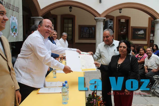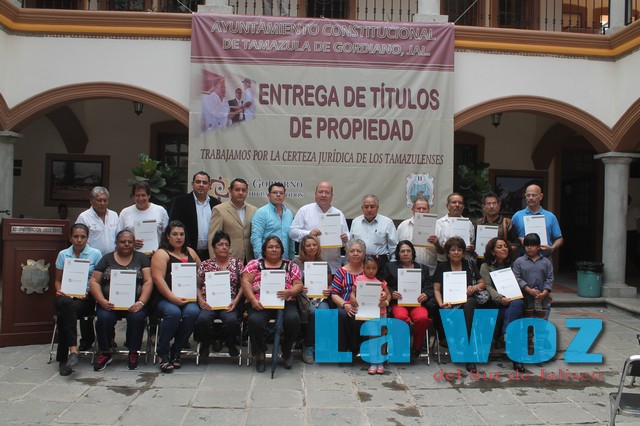 En el patio de presidencia municipal se llevó a cabo la entrega de títulos de propiedad a los vecinos de la calle 20 de Noviembre y Vista Hermosa Primera Etapa, como parte de los compromisos que fueron asumidos por el presidente municipal Dr. Francisco Javier Álvarez Chávez, con el único objetivo de brindar certeza jurídica a las familias tamazulenses. El acto protocolario fue presidido por el primer edil, acompañado del síndico municipal, licenciado Juan José navarro Patiño y del Lic. Jorge Arturo Quevedo Osuna comisionado suplente del procurador de Desarrollo Urbano del Estado, así como de los regidores que integran la comisión municipal de regularización COMUR. Álvarez Chávez felicito a los beneficiados y reconoció el trabajo conjunto de los vecinos tamazulenses con las dependencias involucradas, a fin de lograr la anhelada expedición de los títulos de propiedad que otorgan certeza jurídica sobre su propiedad. “Una vez más refrendo mí compromiso de seguir trabajando para que se sigan otorgando estos importantes documentos que dan certeza patrimonial a los dueños de fincas, terrenos y sus familias” Quevedo Osuna, felicito a los acreedores de los nuevos títulos de propiedad, esta vez once de Vista Hermosa y tres de la calle 20 de Noviembre y al presidente municipal por su gran trabajo realizado ante la COMUR, ya que Tamazula es el municipio que ha logrado sobre pasar a los demás municipios en la tramitación de títulos en lo que va de la administración. Los vecinos recibieron con gran satisfacción el documento que les acredita la legal posesión de sus inmuebles cuyo trámite realizaron en algunos casos por más de nueve años, pero reconocieron el interés del gobierno municipal, por atender las gestiones y de esta forma ver su sueño cristalizado.