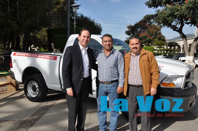 CIUDAD GUZMAN, JAL., (ES).- José Luis Orozco Sánchez Aldana, presidente municipal de Zapotlán El Grande, acompañado de José de Jesús Núñez González, secretario general del Ayuntamiento, entregó al director de Servicios Públicos Municipales, Ernesto Sánchez Sánchez un vehículo seminuevo adquirido para ofrecer a la ciudadanía una mejor calidad en los servicios públicos