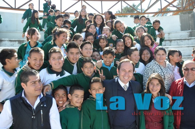 CIUDAD GUZMAN, JAL., (ES).- José Luis Orozco Sánchez Aldana, presidente municipal de Zapotlán El Grande, asistió esta mañana la escuela Secundaria Federal Benito Juárez para hacer entrega de las láminas que cubrirán el techo del auditorio en esta institución. Esta obra se lleva a cabo con el esfuerzo de los padres de familia, el apoyo de autoridades municipales, estatales, la Secretaría de Educación Pública y maestros. Raymundo Rodríguez Fernández, director del plantel; agradeció el apoyo del Gobierno Municipal, en especial del alcalde José Luis Orozco, señalando como un hecho histórico la tercera visita de un alcalde a la institución. “Este es un día histórico para nuestra escuela, porque desde hace muchísimos años que un presidente municipal viene en tres ocasiones a visitar a nuestra comunidad educativa; esto es una muestra de que tenemos un gobernante en el municipio que se ha rodado de un equipo sensible para atender las necesidades de nuestra sociedad y en especial para atender las necesidades de nuestra comunidad educativa”. Por su parte, José Luis Orozco refrendó su compromiso con la comunidad educativa y agradeció el apoyo del Ayuntamiento para seguir consolidando acciones en beneficio de la ciudadanía. “Ratificamos nuestro compromiso con la educación de los jóvenes porque la política y el gobierno nunca más puede ser de palabra, las buenas razones y las buenas ideas deben cristalizarse en resultados; agradezco al Ayuntamiento, el Gobierno de Zapotlán está comprometido con ustedes; esta es una obra que tendrá una trascendencia muy importante, muchas felicidades y les digo muchachos que con su presidente y con su gobierno siempre van a contar”. El presidente de la Asociación de Padres de Familia, Jaime Gerardo Chávez Parra agradeció al Presidente Municipal su compromiso y solidaridad con esta escuela. “Señor presidente, el día de hoy estamos muy contentos, estamos de festejo gracias a su solidaridad a su apoyo; el señor presidente ha sido la única autoridad que ha apoyado a esta su secundaria en estas fechas, donando toda la lámina de esta estructura de aproximadamente 1,800 metros cuadrados con un valor aproximado de 300 mil pesos y eso es gracias a su compromiso y sensibilidad” El presídium estuvo integrado por José Luis Orozco Sánchez Aldana, presidente municipal de Zapotlán el Grande; los regidores Joel Salvador Bautista y Bertha Alicia Álvarez del Toro; Jaime Gerardo Chávez Parra, presidente de la Asociación de Padres de Familia; en representación de Mario Romero Cortez, Secretario General de la Delegación 4, asistió Sandra Fabiola Jiménez Preciado; Erika del Rosario Santana Barboza, presidente del Consejo Escolar de Participación Social; Sergio Cervantes Ramos, presidente del Comité de Festejos del 75 Aniversario y secretario de la Asociación de Padres de Familia; Brenda Guadalupe Vergara Flores, presidente del Consejo Estudiantil; Alma Rosa Flores Chávez, tesorera de la Asociación de Padres de Familia; y Raymundo Rodríguez Fernández, director de la Escuela Secundaria Benito Juárez; así como integrantes de la Asociación de Padres de Familia.