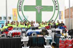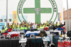 La entrega consistió en uniformes, botas, cascos, mochilas botiquín, electrocardiógrafos, desfibriladores y ventiladores mecánicos, entre otras cosas.