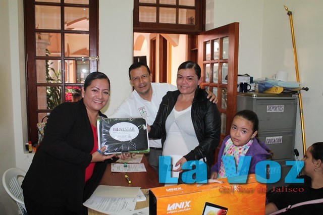Gracias a los programas para apoyo a las familias que ofrece el Gobierno del Estado a través de la Secretaría de Desarrollo e Integración Social (SEDIS), se realizó la entrega de 17 equipos de cómputo a los beneficiarios del programa “Una Computadora por Familia”. La coordinadora regional de la SEDIS, Lic. Liliana Vargas Manríquez dijo que el programa “Una Computadora por Familia” tiene la finalidad de acercar las nuevas tecnologías a los tamazulenses, y de esta forma reducir la brecha digital que se registra en la región del estado. Así mismo hizo un llamado a todas aquellas familias que deseen ser beneficiadas el próximo año con el apoyo por parte de la Secretaría y el otro porcentaje que “es mínimo” deberá ser cubiertoo por la familia; ya que en esta ocasión de todas aquellas familias que fueron inscritas, se perdieron 24 equipos de cómputo, debido a la falta de comunicación. Añadió que en la SEDIS continuará el apoyo para cada uno de los gobiernos municipales, y en Tamazula con más razón pues para el presidente municipal, Francisco Javier Álvarez Chávez, un eje estratégico en su gobierno siempre será la educación. Esta vez, la entrega a los beneficiarios se realizó en la oficina de Desarrollo Humano, donde estuvo presente el C. Fernando Cibrián Ramos, Director de este Departamento, quien se encuentra estrechamente coordinado con la licenciada Vargas, para beneficiar a la mayor parte de la población tamazulense que más lo necesite con los diferentes programas.