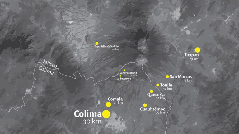 Esta tarde, en el vecino estado de Colima se reportó caída de ceniza “fuerte y constante” en los municipios de Comala, Villa de Álvarez y Colima, situación que podría complicarse con la entrada de un ciclón tropical a las costas de Jalisco y Colima.