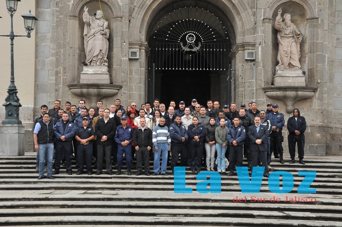 El Presidente de Zapotlán, acompañado de su señora esposa, del secretario general de Ayuntamiento, José de Jesús Núñez González; del oficial mayor administrativo, Jorge Adrián Rubio Castellones; del director de Seguridad Pública, Tránsito y Vialidad, José Gabriel Barrera Cárdenas, así como titulares de área, agradeció y reconoció el servicio a la comunidad que realizan los policías municipales.