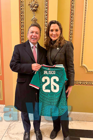 Como gesto simbólico, Pablo Lemus entregó a Salazar una camiseta oficial de la Selección Mexicana “al Estilo Jalisco”. Miami —ciudad que representa la congresista— será sede de siete partidos mundialistas.