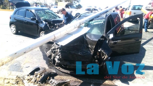 CIUDAD GUZMÁN, JAL., (ES).- Saldo de cuatro personas lesionadas fue el resultado de una carambola entre cuatro vehículos registrada sobre el crucero del Tecnológico la tarde del domingo 29 de enero. El aparatoso choque ocurrió en la carretera Ciudad Guzmán – Zapotiltic, en el sentido de sur a norte.