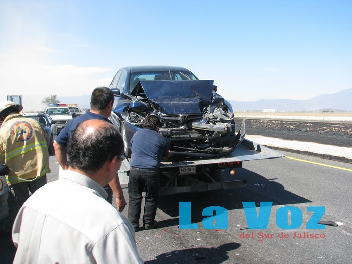 En el lugar resultó lesionada la señora Martha Araiza Nava, vecina del puerto de Manzanillo, Colima, por lo que fue trasladada a un hospital de Ciudad Guzmán para su atención médica, donde se reportó como fuera de peligro.