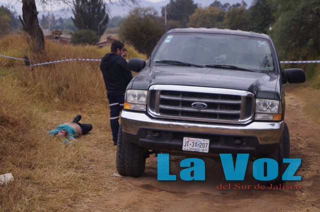 Elementos de la Fuerza Única Regional fueron alertados sobre el hallazgo y se trasladaron al lugar indicado. Ahí encontraron una camioneta Ford F250 en color verde con placas de circulación JT31207 del estado de Jalisco. A un costado del vehículo se ubicaba el cadáver de una persona del sexo masculina que presentaba visibles muestras de haber sido golpeado.