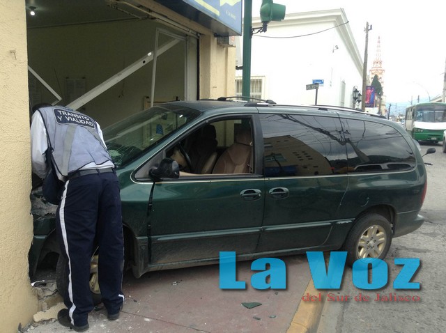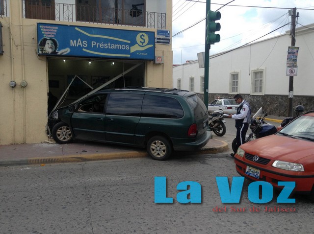 CIUDAD GUZMÁN, JAL., (ES).- En el interior de una casa de empeño con todo y auto, terminó un imprudente conductor que intentó pasarse un alto en la calle Victoria la tarde del martes 1 de septiembre.