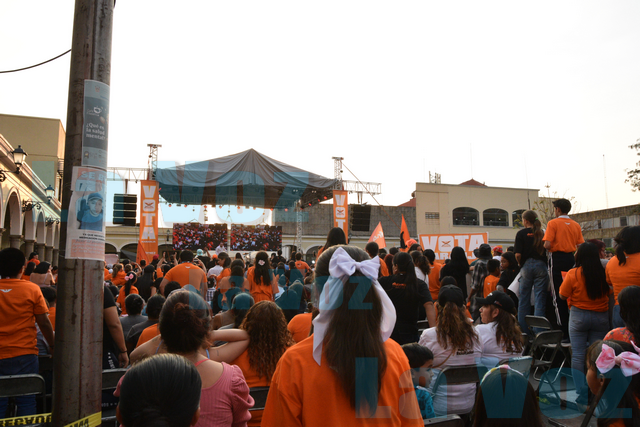 Mientras la multitud esperaba la llegada de Máynez, el cantante Yuawi conocido por sus singles políticos, cantó sus éxitos siendo coreado por la ola naranja que se congregaba en la plaza Las Fuentes de Ciudad Guzmán, así, al son de Máynez presidente, grupos de niños y adolescentes se paraban a bailar la característica coreografía, mientras jóvenes y adultos gritaban por llevarse un mini Máynez a casa.
