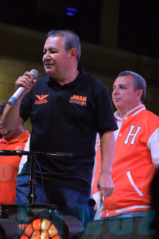 Una vez en el escenario, Higinio del Toro afirmó que los ciudadanos ven en Máynez una opción nueva y fresca de lo que es la política, además, les recordó a los simpatizantes que él está trabajando en conjunto a los candidatos a diputaciones, senadurías y a la gubernatura del estado para el desarrollo del municipio.