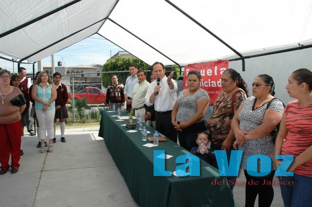 CIUDAD GUZMAN, JAL., (ES).- El presidente municipal de Zapotlán el Grande, José Luis Orozco Sánchez Aldana, visitó la Telesecundaria “Juan José Arreola” para inaugurar una barda perimetral que se construyó gracias a las gestiones realizadas por el regidor presidente de la comisión de Participación Ciudadana, en coordinación con la dirección de la escuela y padres de familia. El presidente municipal reiteró su compromiso con la educación y los jóvenes del municipio y señaló que continuara realizando las gestiones correspondientes a través de la Secretaria de Educación Pública del Gobierno del Estado. “He estado muy insistente en que mejoremos la infraestructura de nuestras escuelas aquí en la ciudad, yo voy a comprometerme con usted director, con los padres de familia, que venga el señor delegado, que veamos como juntos podemos gestionar lo que hoy escucho en las peticiones; del lado del gobierno, cosa especial al alcance de mi presupuesto les vamos a hacer el “bebedero, de parte mía siempre tendrán la puerta abierta y la mano extendida para caminar y hacer las gestiones correspondientes”. Además de la instalación del bebedero, se comprometió a cambiar el enmallado a través del departamento de servicios generales y reforzar con ello la seguridad en el plantel, felicitó a los involucrados en hacer posible estar barda e invito a seguir trabajando unidos. “Yo si quiero felicitar a los padres de familia, al regidor Ricardo Milanés y a la dirección porque esta barda se pudo lograr gracias a que estas tres partes se pusieron de acuerdo y así fue fácil hacerla, debemos seguir trabajando así y vamos haciendo cosas para que esta escuela vaya teniendo el lugar que merece”. Al final de la presentación, las autoridades llevaron a cabo el corte del listón, dejando inaugurada formalmente esta obra, que sin duda brindará más seguridad a los estudiantes y mejorará la imagen del plantel. Para la realización de este evento se contó con la presencia de José Luis Orozco Sánchez Aldana, presidente municipal de Zapotlán el Grande; Ricardo Milanés Ortega, regidor presidente de la comisión de Participación Ciudadana; Rogelio Hernández Lara, director de la Telesecundaria Juan José Arreola y Jesús Anaya Trejo, jefe de educación municipal.
