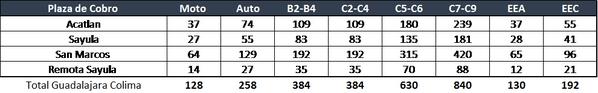 Con la caseta de Acatlán y la de Sayula los automovilistas seguirán pagando 129 pesos, aunque las personas que viajan por la autopista y se dirigen a municipios como Sayula o Gómez Farías tendrán que pagar 27 pesos adicionales.