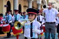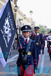 Funcionarios públicos del Gobierno Municipal de Zapotlán el Grande observaron el paso del desfile desde afuera del Edificio de la Presidencia, en donde saludaron a los participantes y entregaron reconocimientos a los representantes de cada una de las instituciones y corporaciones que asistieron a esta conmemoración.