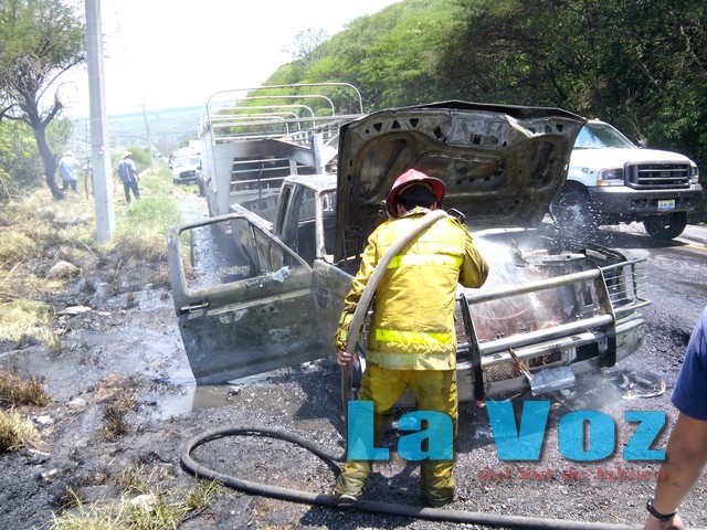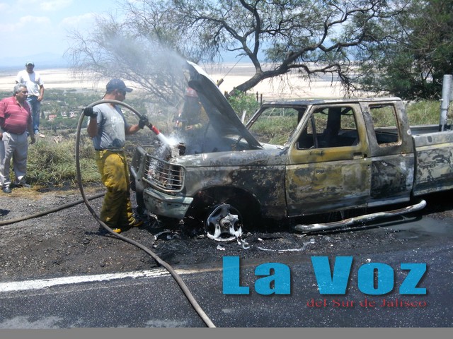 TECHALUTA, JAL., (ES).- Cuantiosos daños materiales y una intensa movilización de unidades de emergencia fue el saldo que dejó el incendio de una camioneta que arrastraba un remolque con animales y la cual fue totalmente consumida por el fuego.