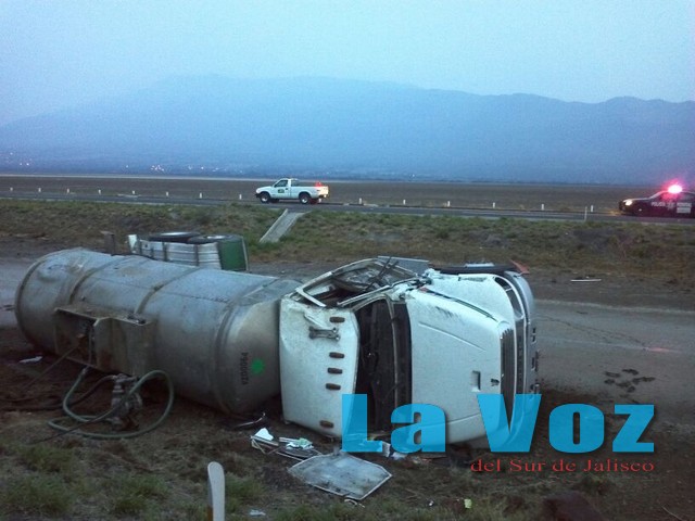 ATOYAC, JAL., (ES).- Intensa movilización de unidades de emergencia se registró sobre el kilómetro 39 de la autopista Guadalajara-Colima luego de que una pipa que transportaba chocara contra un camión de carga y tras volcarse se registrara un fuerte derrame de combustible. Los hechos ocurrieron el sábado 15 de mayo alrededor de las cuatro de la mañana, cuando se reportó el accidente entre dos camiones de carga y se dijo que la pipa estaba derramando parte de su carga consistente en 20 mil litros de gasolina, por lo que personal de la Policía Federal Preventiva y de la Unidad Estatal de Protección Civil cerraron esa vía de comunicación por espacio de seis horas. En el accidente participó un pipa de la empresa Nisalo, S.A. de C.V. la cual se impactó en la parte trasera de un camión tipo torton que transportaba chatarra, el cual esparció su carga por más de sesenta metros mientras que la pipa cayó en la cuneta central y comenzó el derrame de combustible. Ante esta situación los rescatistas decidieron cerrar la circulación vehicular para evitar una contingencia, por lo que autos y camionetas que se dirigían a Guadalajara fueron desviados a la carretera libre, hasta las diez de la mañana en que la circulación fue reabierta. En tanto los conductores de los camiones fueron retenidos mientras se esclarecían los hechos para deslindar responsabilidades.