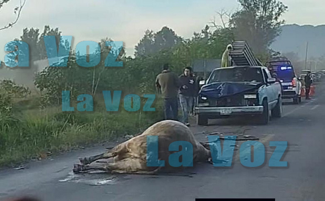 De acuerdo con los primeros reportes, una camioneta que transportaba jornaleros circulaba por la zona cuando de manera sorpresiva una vaca se atravesó en la vía, provocando que la unidad la impactara.
