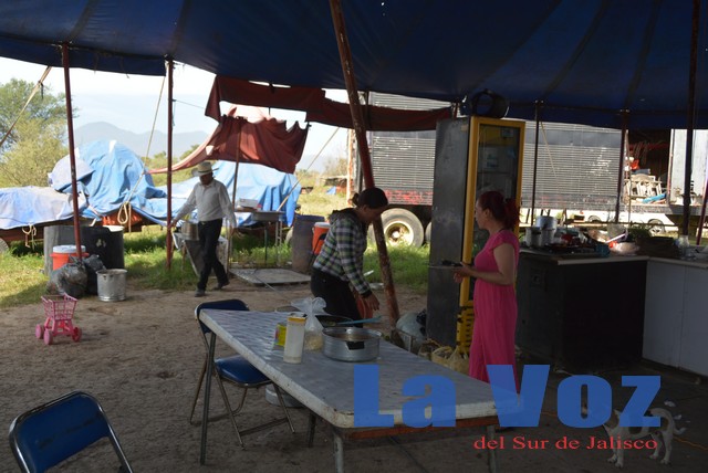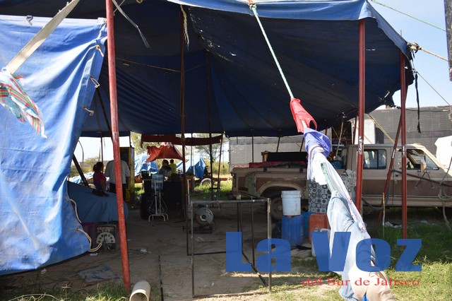 El equipo del periódico La Voz del Sur de Jalisco acudió hasta la zona ubicada detrás de la academia de policía, para encontrar a los más de 15 miembros de la familia Ponce, desayunando en una cocina que se improvisó al centro de la carpa.