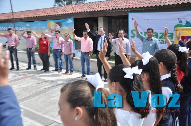 CIUDAD GUZMAN, JAL., (ES).- El gobierno de Zapotlán y el Sapaza, celebraron el Día Estatal del Cuidado del Agua en la escuela “José María Morelos y Pavón” que se ubica en la delegación de El Fresnito, teniendo como invitado especial al presidente municipal José Luis Orozco Sánchez Aldana. Como una iniciativa del diputado local Roberto Mendoza Cárdenas ante el Congreso, se dispuso oficialmente esta fecha para conmemorar “El Día Estatal del Cuidado del Agua”, por lo cual, el Sistema de Agua Potable y Alcantarillado de Zapotlán (SAPAZA) realizó una feria del agua en dicho plantel. El alcalde José Luis Orozco invitó a estudiantes y padres de familia a cuidar y preservar el agua y agradeció las gestiones que realizan los diputados ante el congreso en beneficio de los zapotlenses. “Hay que cuidar, hay que preservar el agua y ustedes saben que estamos haciendo un esfuerzo muy importante aquí en la delegación de la mano del Sistema de Agua Potable de Zapotlán, para que nunca les falte el agua, es una obra muy buena, yo le agradezco al diputado, porque si no fuera por los diputados, las gestiones y los apoyos que nos dan, pues entonces sería muy difícil para los alcaldes poder traer beneficios a la ciudad”. El director del plantel, Jorge Martínez Orozco, agradeció a las autoridades por acercar este tipo de actividades a la delegación asegurando de esta forma, se crea mayor consciencia en el cuidado del agua. “Estamos muy agradecidos de que traigan estas actividades a esta delegación ya que son muy fructíferas a estos niños que son el presente y el futuro de nuestra sociedad y qué bueno que valoren estos recursos que nos brinda la naturaleza”. Entre las actividades realizadas se llevó a cabo un juramento entre todos los estudiantes como “Guardianes del agua” y se realizó la rifa de una bicicleta, así como estuches y pelotas. La feria del agua en la escuela José María Morelos y Pavón contó con la presencia de José Luis Orozco Sánchez Aldana, presidente municipal de Zapotlán el Grande; Roberto Mendoza Cárdenas, diputado local por el distrito 19; Luis Lino Hernández Espinoza, director del Sistema de Agua Potable de Zapotlán; y Jorge Martínez Orozco, director del plantel.