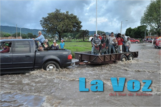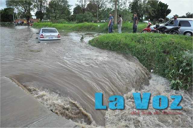 CIUDAD GUZMÁN, JAL. (ES).- A consecuencia de las abundantes lluvias de la semana de hasta 24.6 mm en la zona urbana, así como la ineficiente y obsoleta red de recolección hidráulica;  el sistema de drenaje se vio afectado al superarse su capacidad de captación. Esto causó que el líquido comenzara a brotar de las alcantarillas y se levantaran las tapas de los registros y colectores, así como la obstrucción de las tuberías de desagüe en las líneas domiciliarias.  Fue el martes 23 de julio cuando  se presentaron la mayor cantidad de afectaciones. En las calles de Circuito Interior Poniente, Aldama, Fray Bartolomé de las Casas, Venustiano Carranza y Federico del Toro; se recibieron los reportes por parte del personal de SAPAZA sobre la obstrucción de las tuberías del drenaje debido al taponamiento por basura y lodo. De inmediato comenzaron los trabajos de sondeo con maquinaria especial, esperando que las condiciones climáticas permitan terminar con el trabajo en las próximas fechas. El mismo día, la unidad estatal de Protección Civil y Bomberos recibió el reporte de un vehículo arrastrado por la corriente con sus tripulantes abordo sobre la calle Allende al cruce con Guerrero. Al arribar al lugar se encontraron un coche marca Ford de cinco puertas color gris cubierto por al agua a la altura del cofre y apunto de ser arrastrado al canal hidrológico. Afortunadamente los ocupantes lograron salir a tiempo y el conductor fue trasladado por un particular a un hospital sin reportarse daños mayores.    Por si fuera poco, personal de protección civil se trasladó a la calle Gómez Farías, donde se recibió el reporte de dos casas inundadas. Los hechos ocurrieron en la finca marcada con el número once, lugar en donde se registró el ingreso de aguas negras con una profundidad de 5 centímetros sin tener mayor afectación en el inmueble. Por el contrario en la casa marcada con el número nueve, se observó un ingreso de agua de 15 a 20 centímetros, afectando dormitorios, cocina y sala; con una perdida aproximada de 20 mil pesos en menajes. Después de realizar la valoración de las afectaciones, se emprendió la tarea de limpieza y saneamiento de las casas afectadas.  Para el miércoles por la tarde se repitió la tormenta con granizo, lo que ocasionó inundaciones en varias vialidades de la ciudad por lo que los cuerpos de emergencia realizaron recorridos en diferentes colonias para auxiliar a la ciudadanía.
