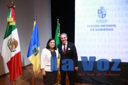 CIUDAD GUZMÁN, JAL., (ES).- En un acto sin precedentes la presidenta municipal interina María Luis Juan Morales y el alcalde con licencia José Guerrero Zúñiga rindieron el Tercer Informe de Actividades del Gobierno de Zapotlán.
