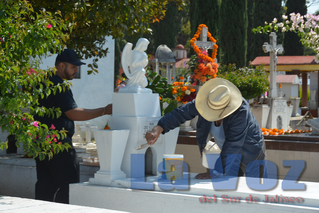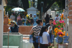 Desde muy temprano, los días 1 y 2 de noviembre ambos panteones lucieron repletos de personas que llegaban con cubetas, ramos de flores, pintura y hasta grupos musicales para cantarle a los difuntos.