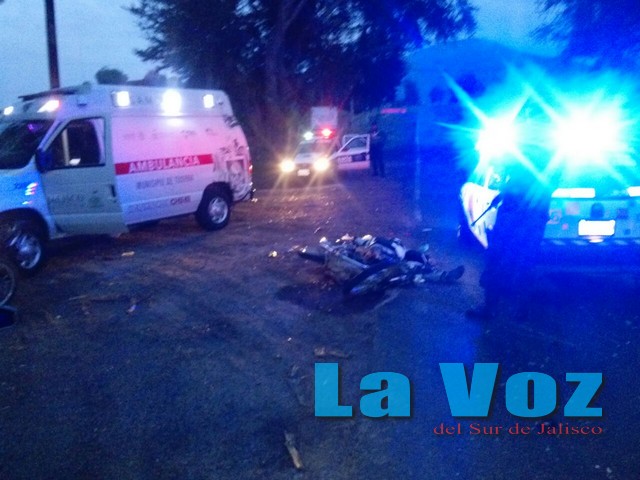 TUXPAN, JAL., (ES).- Trágico accidente se registró en el municipio de Tuxpan la mañana del viernes 29 de mayo cuando un hombre falleció al ser embestido por otro vehículo después de haber chocado la motocicleta en que viajaba.
