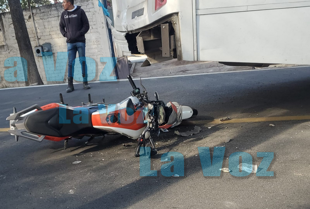 De acuerdo con información preliminar, el conductor de la motocicleta se impactó contra la parte trasera de un autobús de personal, lo que provocó su caída sobre la carpeta asfáltica.