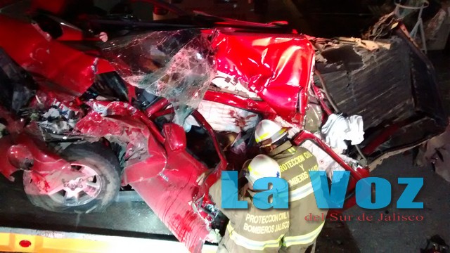 TONILA, JAL., (ES).- Trágica muerte encontraron dos jóvenes vecinos de esta ciudad luego de que al circular por la autopista Guadalajara-Colima fueran embestidos por un camión de carga que se quedó sin frenos. El fatal accidente tuvo lugar la noche del domingo 29 de junio cuando Carlos Alberto Rondan Rodríguez y Oscar Martel Casillas regresaban del vecino estado de Colima a bordo de una camioneta Toyota Tacoma en color tinto con placas de circulación JS 41080 del estado de Jalisco, y al llegar a la caseta de cobro de San Marcos tuvieron que detener su marcha en espera de que les tocara el turno para pagar el peaje cuando repentinamente se escuchó de la parte trasera la corneta de un trailer en color blanco que transportaba varias toneladas de cemento y que se había quedado sin frenos. Debido a que el carril derecho se encontraba cerrado al tránsito de vehículos, el conductor del trailer se proyectó en contra de la camioneta embistiéndola por la parte trasera hasta impactarla con un trailer que se encontraba delante de esta. Tras el fuerte percance, personal de Seguridad Pública de Tonila que se encontraba de guardia en el lugar, de inmediato corrió al lugar del accidente solicitando vía radio apoyo de paramédicos de la Cruz Roja Mexicana y Protección Civil Municipal y Estatal debido a que los tripulantes habían quedado prensados al interior de la cabina. En menos de un minuto los paramédicos de la Cruz Roja que se encontraban de guardia en los servicios médicos de la caseta de cobro llegaron para auxiliarlos sin embargo tras lo fuerte del impacto nada pudieron hacer ya que ambos jóvenes habían perdido la vida de forma inmediata. Hasta el sitio se desplazó personal de la Fiscalía General, Policía Federal y el Instituto Jalisciense de Ciencias Forenses para tomar conocimiento de los hechos y ordenar la remoción del trailer que quedó encima de la camioneta para que pudieran liberar los cuerpos. Ambos vehículos permanecieron en el sitio por más de 90 minutos hasta que finalmente el trailer fue quitado de encima con la ayuda de una grúa y posteriormente la camioneta de los infortunados jóvenes fue quitada del lugar y puesta en otro punto para que los rescatistas hicieran las maniobras necesarias para poderlos liberar. Se supo que ambos jóvenes tenían su domicilio en Ciudad Guzmán, por lo que sus cuerpos fueron trasladados a la morgue del Instituto Jalisciense de Ciencias Forenses para los estudios de ley. Al interior de la cabina del trailer se encontraron papeles a nombre de Antonio Zúñiga Flores, quien presumiblemente era el conductor del camión y quien tras el percance bajó de este y se dio a la fuga.