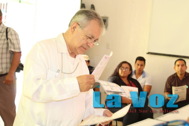 Braulio Rafael León Villegas, obispo de la Diócesis de Ciudad Guzmán, asistió a la casilla instalada en el Jardín de Niños Justo Sierra, lugar donde invitó a los ciudadanos a ejercer su derecho al voto si en verdad buscan un cambio social.