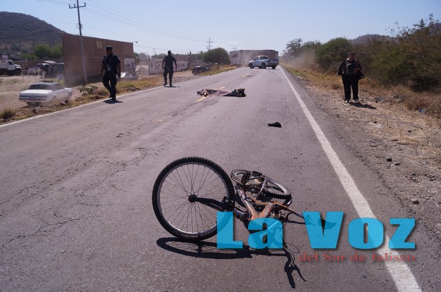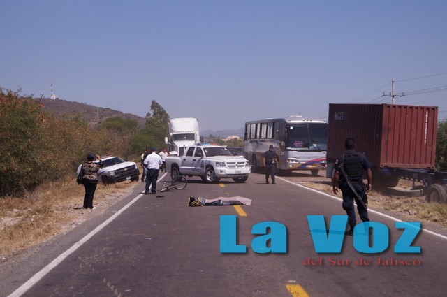 ZACOALCO DE TORRES, JAL., (ES).- Trágica muerte encontró el conductor de una bicicleta luego de ser atropellado por un imprudente y cobarde automovilista cuando circulaba por la carretera libre Guadalajara-Colima.