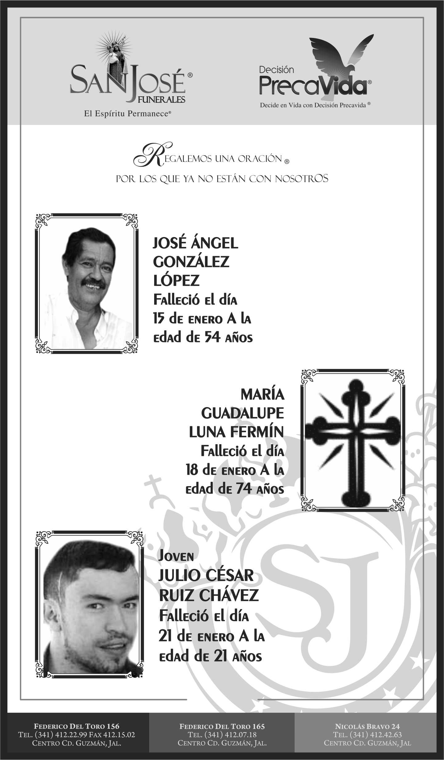 Obituarios Published on enero 24th, 2016 | by lavozsur 0 Obituario Funerales San José, del 15 al 23 de enero de 2016 Related posts: Obituario Funerales San José, Del 21 al 29 de enero de 2016 José Luis Orozco expresa sus condolencias por la muerte de Tijelino El CEM de Morena lamenta la muerte de Tijelino About the Author lavozsur Con 35 años de trayectoria, somos el periódico número 1 en información y análisis de la región Sur de Jalisco. Related Posts Asalto a Camión de Carga en la Autopista Deja un Muerto y Provoca Movilización → Empleado de una Empacadora Pierde la Vida al ser Atropellado en el Crucero del Zapote → El CEM de Morena lamenta la muerte de Tijelino → José Luis Orozco expresa sus condolencias por la muerte de Tijelino → Deja un comentarioTu dirección de correo electrónico no será publicada. Los campos obligatorios están marcados con *Comentario * Nombre * Correo electrónico * Web Guardar mi nombre, correo electrónico y sitio web en este navegador para la próxima vez que haga un comentario. Δ