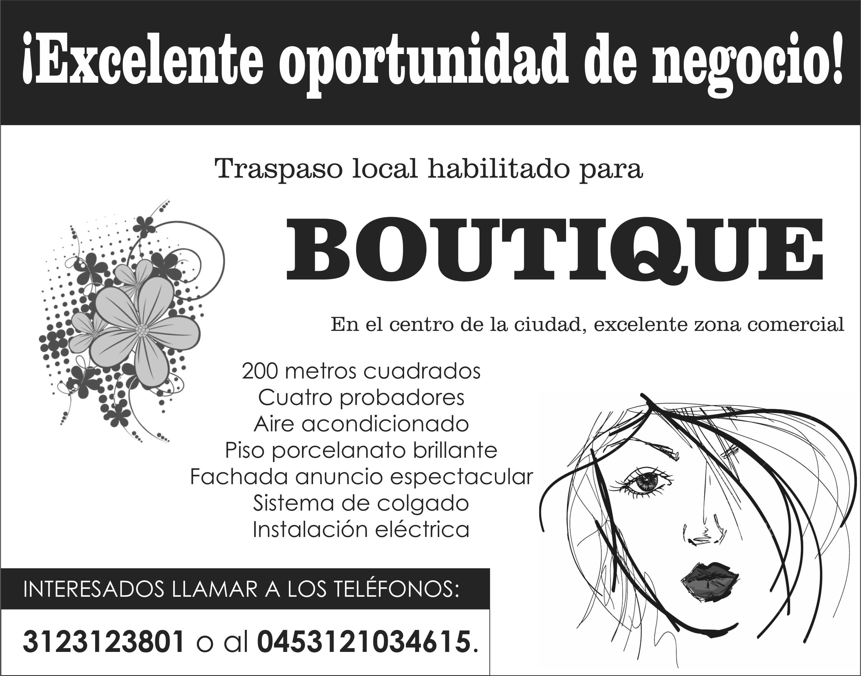 Oportunidad de Negocio Published on enero 24th, 2016 | by lavozsur 0 ¡Oportunidad de negocio! Traspaso Boutique Related posts: ¿Interesado en adquirir derechos ante la Conagua? Inkresol abre oficina de Occidente y busca distribuidores Se venden bodegas, casa y terreno About the Author lavozsur Con 35 años de trayectoria, somos el periódico número 1 en información y análisis de la región Sur de Jalisco. Related Posts Asalto a Camión de Carga en la Autopista Deja un Muerto y Provoca Movilización → Empleado de una Empacadora Pierde la Vida al ser Atropellado en el Crucero del Zapote → Se venden bodegas, casa y terreno → Se vende terreno en Los Rusios, Tamazula → Deja un comentarioTu dirección de correo electrónico no será publicada. Los campos obligatorios están marcados con *Comentario * Nombre * Correo electrónico * Web Guardar mi nombre, correo electrónico y sitio web en este navegador para la próxima vez que haga un comentario. Δ