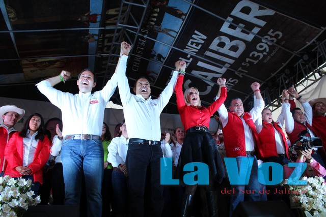 En el acto clausuraron sus campañas luego de dos meses de intenso trabajo: Roberto “Chino Mendoza, contendiente a la alcaldía; Susana Barajas del Toro, quien busca llegar al Congreso del Estado como legisladora local; y José Luis Orozco Sánchez Aldana, abanderado a la diputación federal.