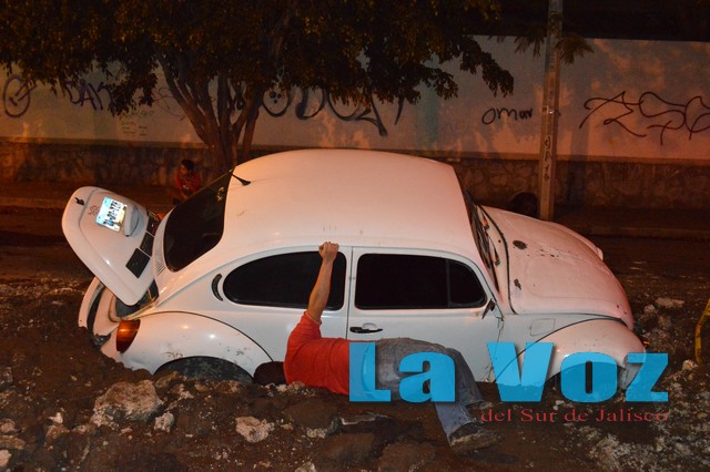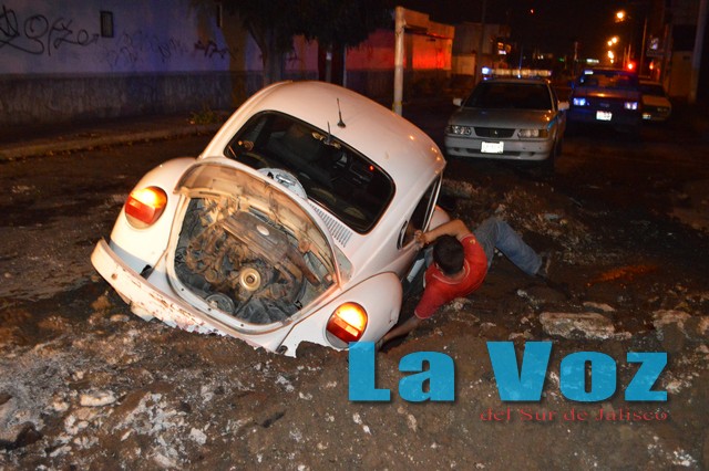 El incidente se registró la noche del miércoles 13 de mayo en los cruces de las calles Indio y Matamoros, cerca del Seminario Mayor. En la zona el Sistema de Agua Potable de Zapotlán ejecuta una obra de saneamiento para la que requirieron abrir un tramo de la calle.