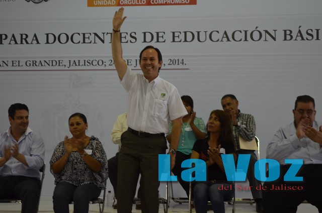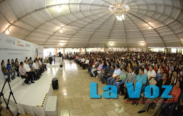 En su tercera visita al municipio de Zapotlán el Grande, el Gobernador del Estado, Jorge Aristóteles Sandoval Díaz, acompañado por el alcalde José Luis Orozco Sánchez Aldana, presidió la entrega de 389 computadoras a maestros de educación básica de la Región Sur y Sureste. Durante la ceremonia realizada en el Casino Auditorio de Ciudad Guzmán, ante la presencia de representantes de los diferentes sectores de la sociedad, José Luis Orozco señaló que para Zapotlán el Grande es de gran estímulo contar en estas tierras de nuevo con la presencia del Gobernador, “quien ha demostrado en su actuación y gran sensibilidad en la detección y solución de los problemas sociales que enfrenta nuestra comunidad en sus diversas aristas”. “Reiteramos por nuestra parte, señor Gobernador, el compromiso de seguir trabajando desde esta trinchera en base a su visión y dimensión institucional, con la entrega, la transparencia, la honestidad y la congruencia que nos exige la voluntad del pueblo, pero sin perder de vista las prioridades que habrá de generar las condiciones para elevar la calidad de vida de nuestros habitantes, procurando en todo momento el bienestar de la ciudadanía”. Asimismo, el presidente José Luis Orozco agradeció que a través de la entrega de computadoras, se contribuya a fortalecer al sector docente, al cual destacó como principal responsable en la formación de futuras generaciones de hombres y mujeres que seguirán transformando y promoviendo a México. “A los beneficiados los exhortamos para que no pierdan de vista la función social de su trascendente tarea en el beneficio del desarrollo de nuestros niños y jóvenes, reconocemos en todos ustedes a profesionistas que aman su trabajo y que lo honran en el día a día, buscando en las aulas la trascendencia de sus alumnos”, dijo el alcalde zapotlense. Por su parte, el Gobernador Aristóteles Sandoval señaló que en Jalisco se está aplicando la tecnología para fortalecer y modernizar la educación, por ello “venimos a Ciudad Guzmán a entregarles a nuestros profesores 389 computadoras que representan una inversión de 2 millones 510 mil pesos”, equipos portátiles que se otorgan a través del fideicomiso del fondo de apoyo al proyecto de tecnologías educativas y de la información para maestros de la educación básica del estado. También hizo énfasis en que este 2014 se apoyará a 10 mil profesores de Jalisco a través de una inversión de 65 millones de pesos, agregando que “este año hemos beneficiados a 5 mil 873 alumnos de Ciudad Guzmán con el Programa de Apoyo al Transporte para Estudiante en su modalidad de Bienevales; y con el programa Mochilas con útiles queremos llegar este año a uno punto cinco millones estudiantes en todo el estado”. Sandoval Díaz señaló que su gobierno estará creando las oportunidades para que los profesionistas del estado puedan trabajar con todas las herramientas que sean necesarias, recalcando que “el día de hoy venimos a hablar con hechos con ustedes”.