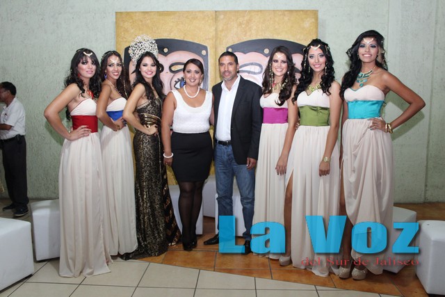 La explanada del jardín principal sirvió de marco para presentar a cinco señoritas que aspiran al título de reina de la feria Tuxpan Jalisco 2014, evento engalanado con la presencia de Fernanda Barragán, reina 2013.