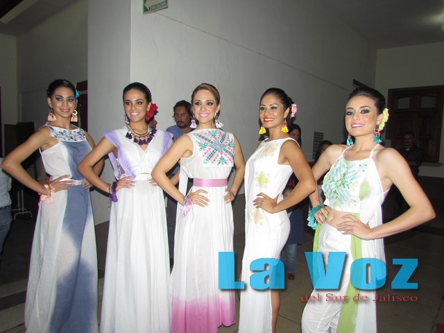 Las aspirantes al máximo título de la belleza zapotlense vistieron prendas alusivas a los festejos por la Independencia, que fueron diseños del hidalguense Yeshua Herrera; Martha Rodríguez se encargó de los accesorios; Jolú Baltazar, del vestuario, y a Julio Murguía le correspondió el maquillaje. La pasarela fue coordinada por el modelo Carlos Reyes.