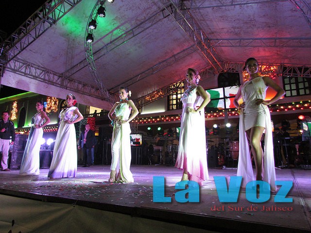 CIUDAD GUZMAN, JAL., (ES).- La belleza de las cinco aspirantes a la corona Señorita Zapotlán 2014 abrió los festejos por el Grito de Independencia en Zapotlán el Grande. Los rostros de Alma, Fernanda, Michelle, Nallely y Yadira fueron mostrados por primera vez de manera oficial ante una Plaza 5 de mayo abarrotada por miles de asistentes.