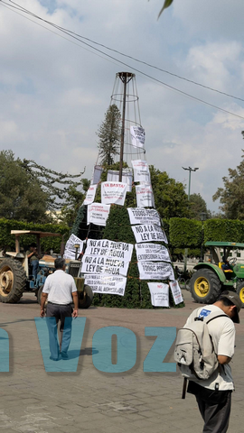 Desde temprana hora, decenas de tractores bloquearon el ingreso a la presidencia municipal de Zapotlán el Grande, luego subieron sus tractores a los portales y al jardín principal y cubrieron el árbol navideño con diferentes pancartas.