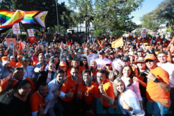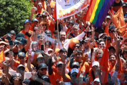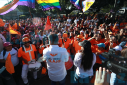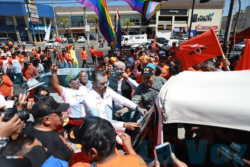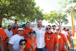 Durante el día, el candidato acudió a la pega de calcas en cruceros de San Agustín, San Sebastián y Santa Fe, donde lo acompañaron cientos de personas.