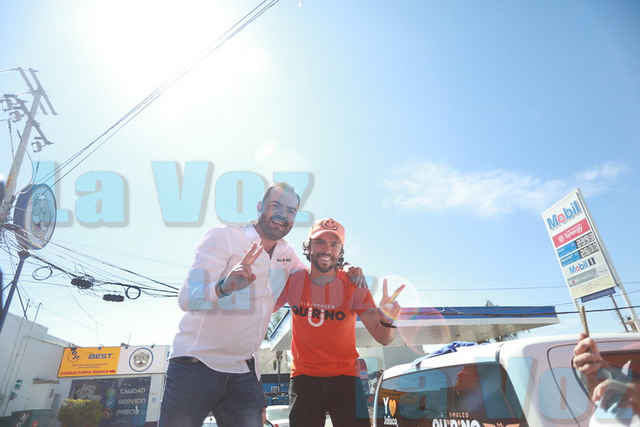 Durante el día, el candidato acudió a la pega de calcas en cruceros de San Agustín, San Sebastián y Santa Fe, donde lo acompañaron cientos de personas.