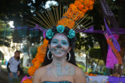 En esta edición, los catrines no se limitaron a los alumnos de la preparatoria, pues fue común ver a niñas con vestidos pomposos y caras pintadas, personas con coronas de flores y hasta un xoloitzcuintle pintado de calaca listo para guiar al Mictlán.
