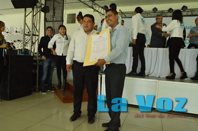 TUXPAN, JAL., (ES).- El médico cirujano dentista Edwin Romero Cortés, quien contendió en los pasados comicios por el Partido Nueva Alianza para la presidencia municipal de Tuxpan, asistió acompañado de algunos regidores que comprenden su equipo de trabajo al acto protocolario organizado en la ciudad de Guadalajara Jalisco donde recibió la constancia de mayoría, documento que les certifica como ganador del ejercicio electoral que se realizó 7 de junio.