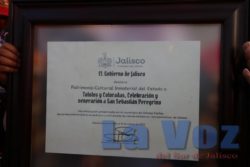 GÓMEZ FARÍAS, JAL., (ES).- La Secretaría de Cultura de Jalisco entregó la Declaratoria de Patrimonio Cultural Inmaterial a la Manifestación de los Tololos y las Coloradas, celebración y veneración a San Sebastián Peregrino, un hecho histórico que busca mantener y salvaguardar la tradición de este municipio.