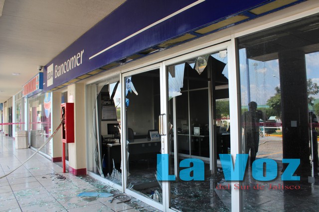 Cerca de las 10:00 de la mañana los habitantes de la ciudad se impactaron al observar una larga columna de humo que salía de Plaza Zapotlán (al sur de la comunidad). El panorama era producto del ataque con fuego a la sucursal bancaria de Banamex, establecimiento que quedó totalmente calcinado y donde se dejaron millonarias pérdidas materiales.