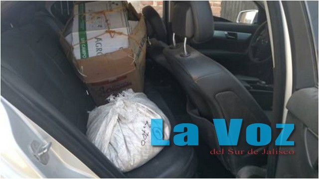 Un Mercedez Benz color plata modelo 2010, placas JHP 76 32, con costales en el asiento trasero que contenían 49 kilos 540 gramos de marihuana. El auto fue robado el 23 de marzo de 2014 en Zapopan.