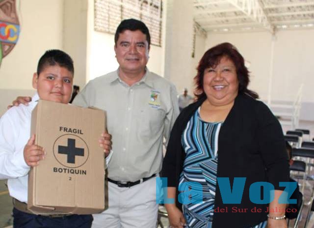 “Queremos tener escuelas que presten los primeros auxilios, para que nuestros niños estudien en un entorno más seguro”, así lo expresó el maestro René Santiago Macías al entregar botiquines a las escuelas de Zapotiltic.