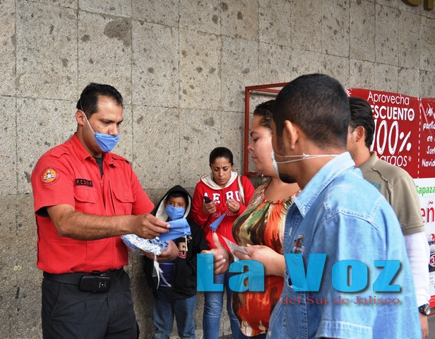 CIUDAD GUZMÁN, JAL., (ES).- El Gobierno Municipal de Zapotlán el Grande, en conjunto con la Secretaría de Salud Jalisco (SSJ), realizaron la entrega de más de 2 mil cubre bocas en el primer cuadro de la ciudad y los principales centros comerciales con la finalidad de proteger la salud de los zapotlenses ante la fuerte caída de ceniza registrada la mañana del sábado 3 de enero.