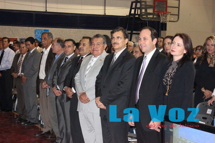 En el quinto informe de actividades del Dr. Adolfo Espinoza de los Monteros Cárdenas, también estuvo presente el Mtro. Tonatiuh Bravo Padilla, rector del CUCEA y rector general electo de la Universidad de Guadalajara, así como el Lic. José Luis Orozco Sánchez Aldana, alcalde de Zapotlán El Grande, Jalisco.